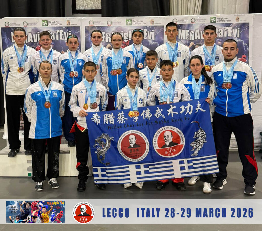 Με απόλυτη επιτυχία ολοκληρώθηκε η συμμετοχή των σχολών Choy Lee Fut Άργους & Ναυπλίου στο Διεθνές Τουρνουά Wushu «MeravigliaTevi», που διεξήχθη στην πόλη Λέκκο της Ιταλίας, από τις 28 έως τις 30 Μαρτίου.