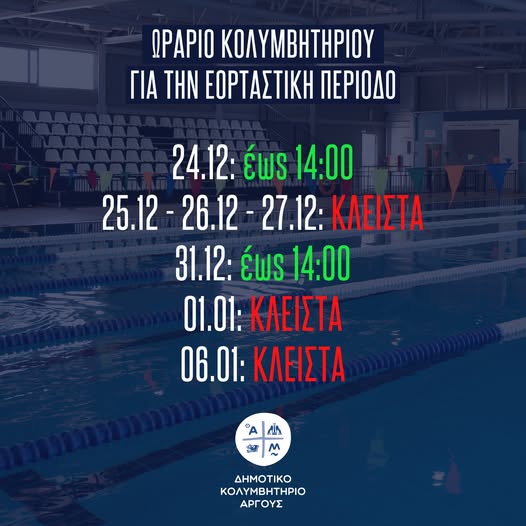 Κλειστό Δημοτικό Κολυμβητήριο Άργους – ΩΡΑΡΙΟ ΕΟΡΤΩΝ